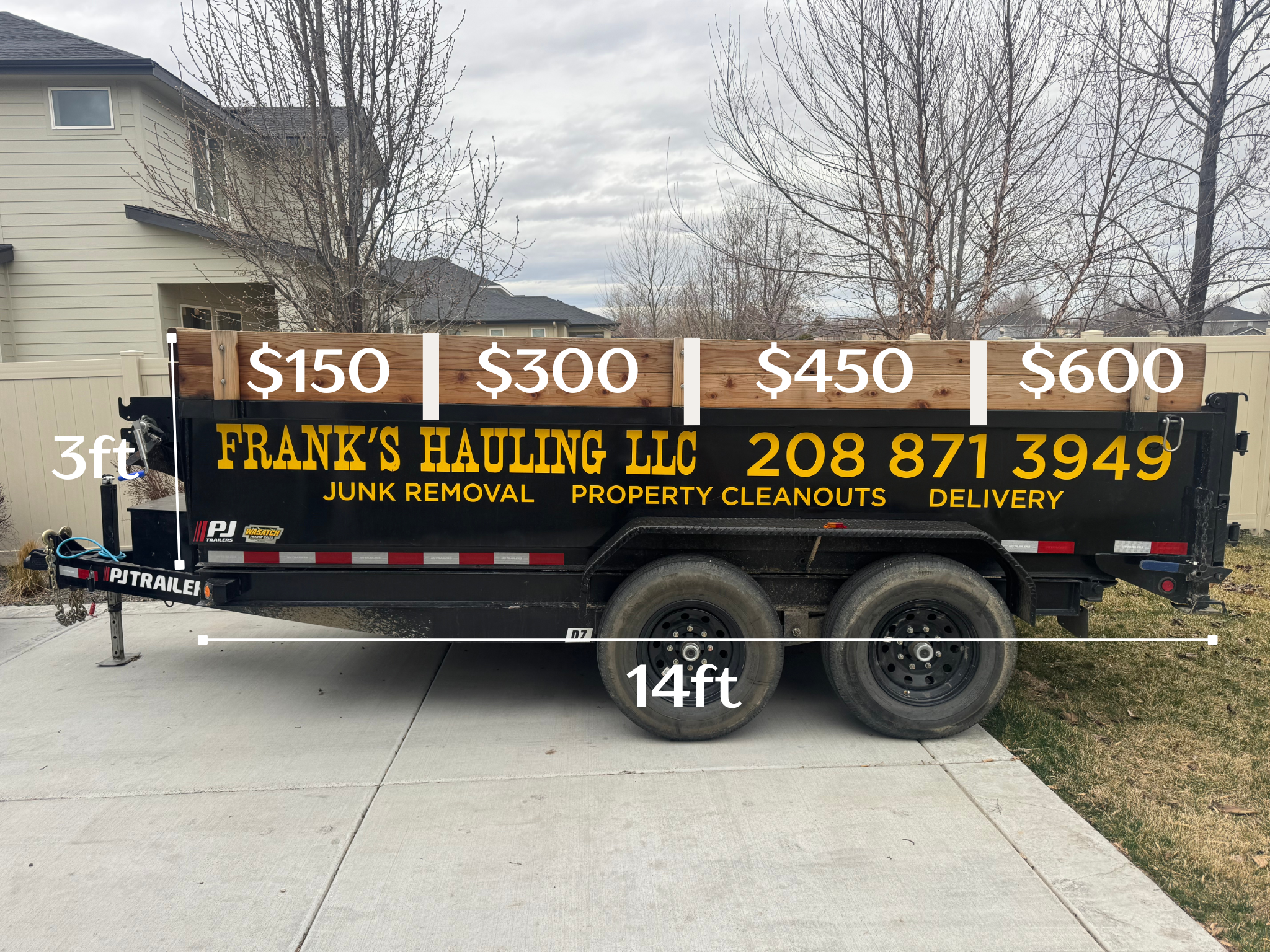 We’re keeping it simple: flat rate pricing plus the cost of fuel. Per 1/4 load, we charge $150, and include travel up to 15 miles. Every mile driven after 15 free miles is $2. For heavier loads (concrete, construction debris, sod, dirt, etc) we charge $175 per 1/4 load. For pricing on appliances and other specialty items, please submit a request for a quote along with a brief description of the items by clicking the button below.